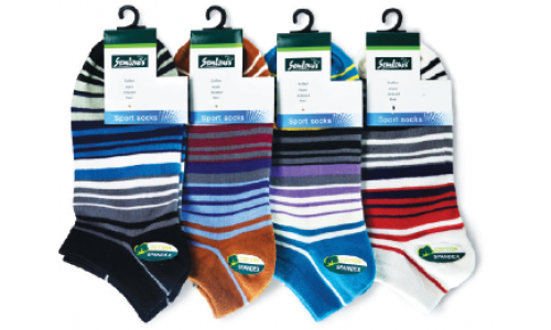 1 pair pack, different colour base with the lines of symmetry,made of material cotton and spandex for moisture absorbption. It has ability of return to original length after being stretched. Is a comfy sport socks, very suitable for long walk.